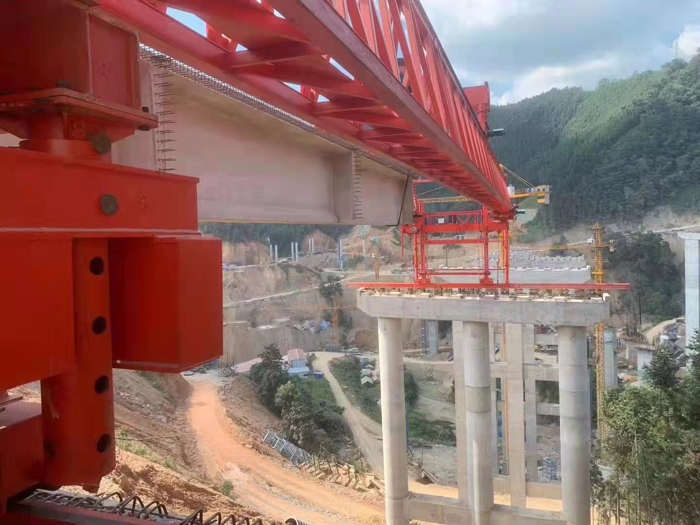 中交二航局平塘至天峨高速公路四標天峨樞紐大橋互通河南高遠榮譽出品GYLQ200T-40M自平衡過跨架橋機首架成功